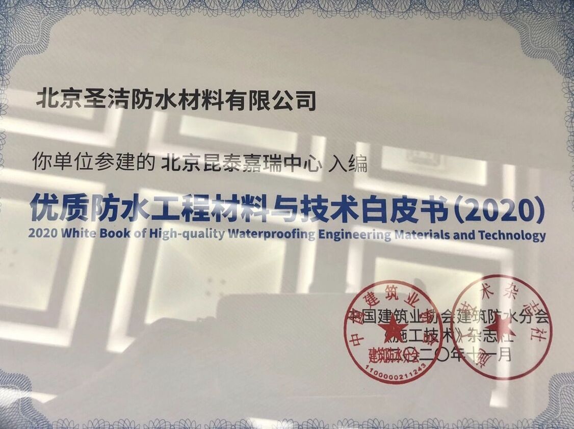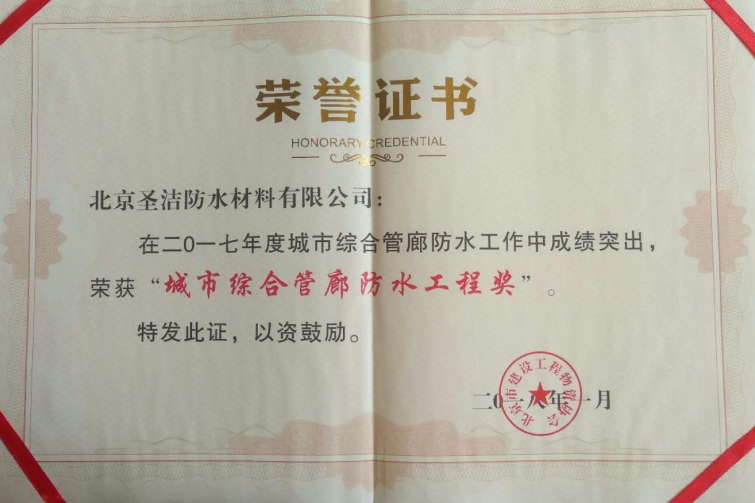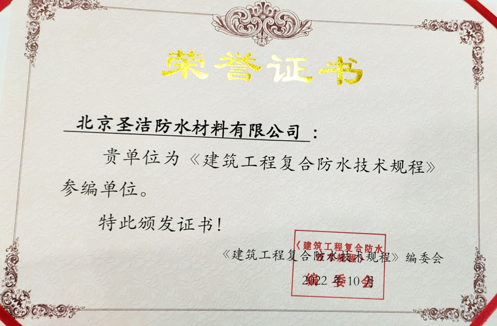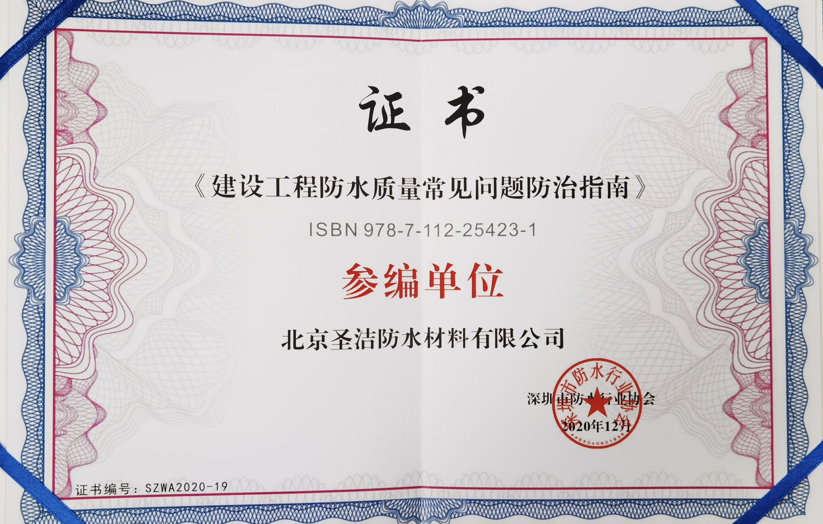 • 中國建筑學會建筑防水學術委員會榮譽證書