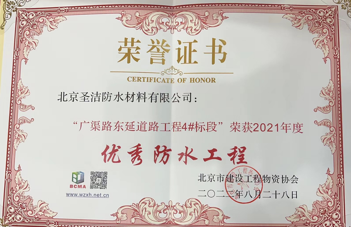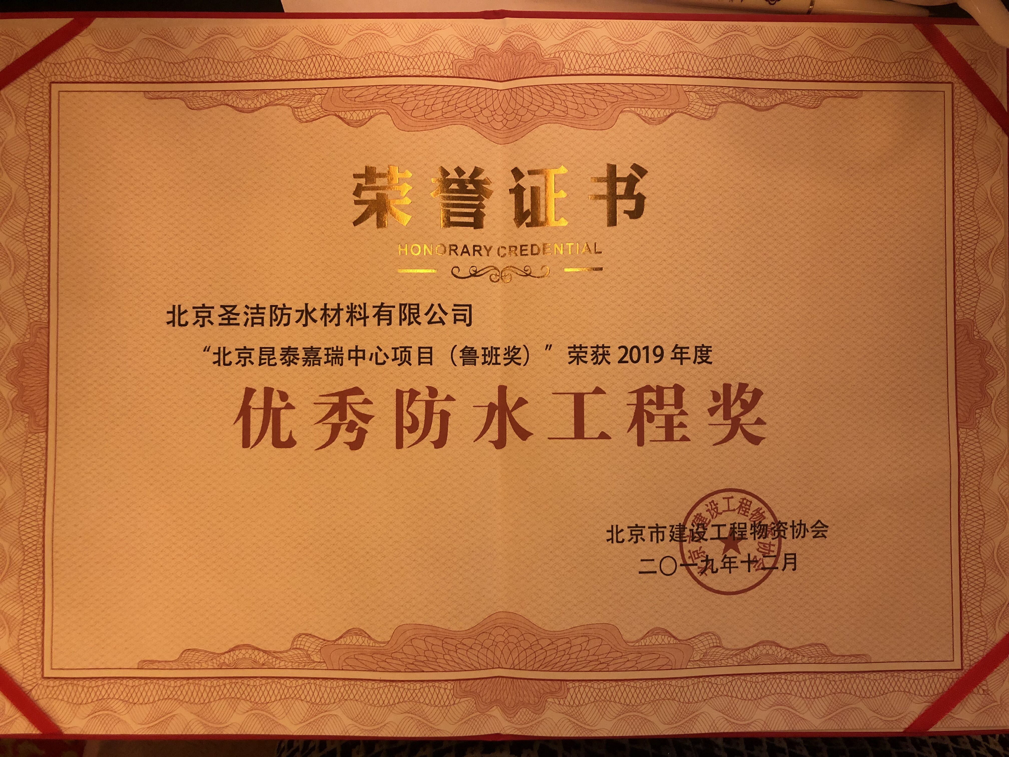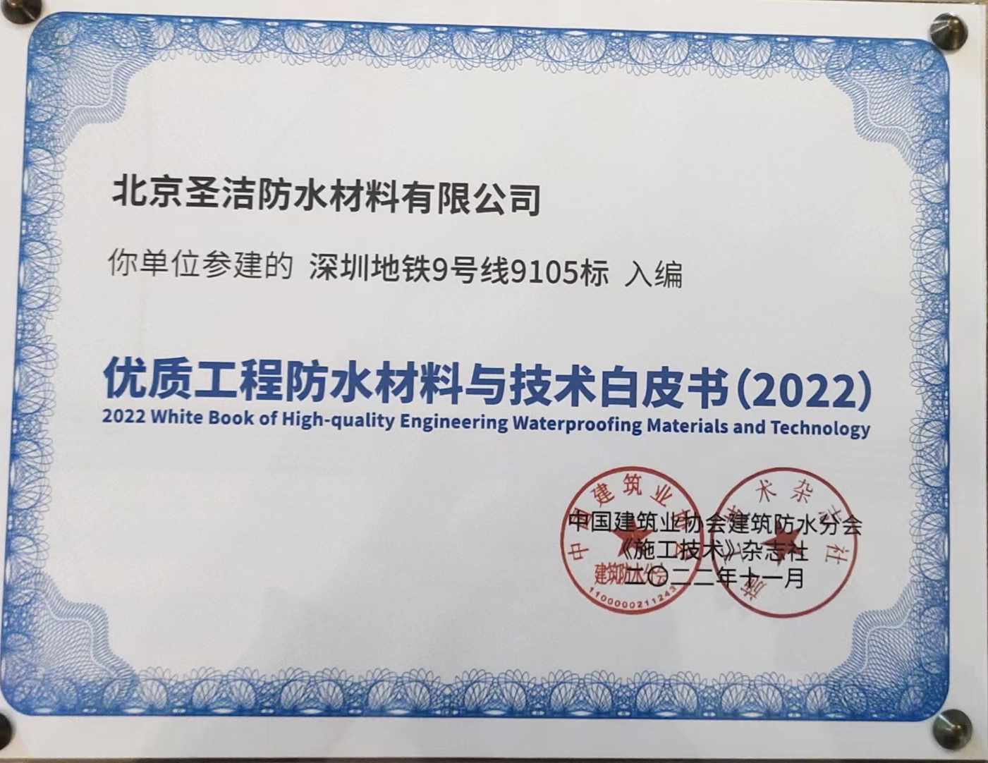 • 中國建筑學會建筑防水學術委員會榮譽證書