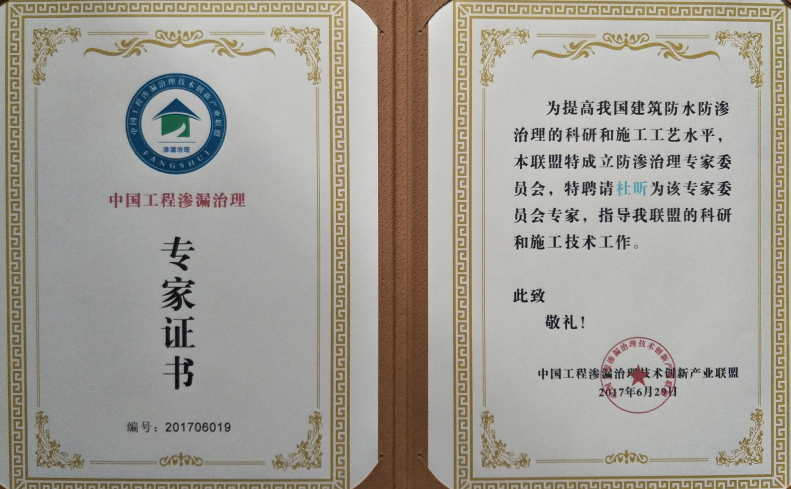• 杜昕中國建筑防水科技創新先鋒人物證書