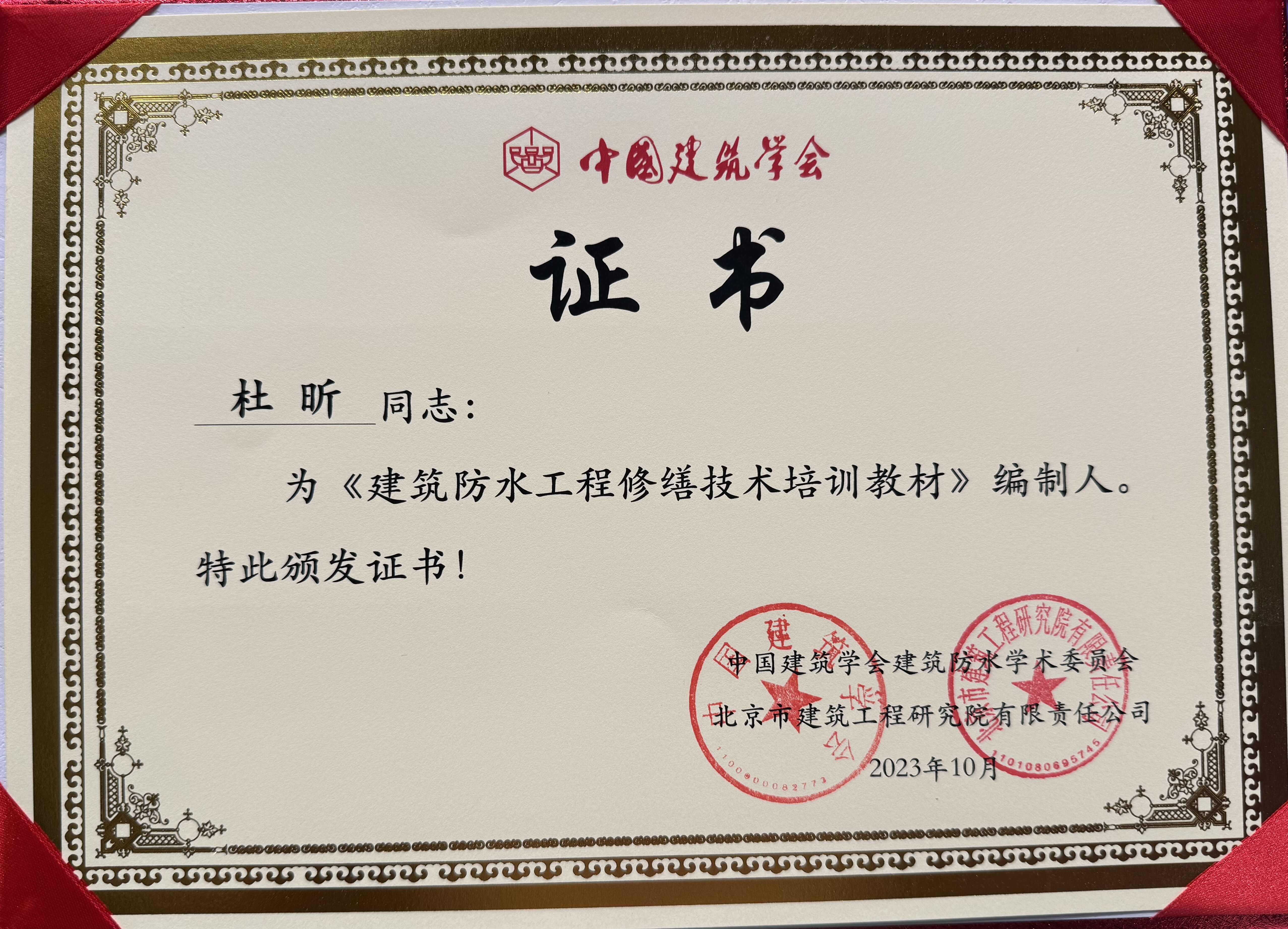 • 《建筑工程防水修繕技術培訓教材》編制人證