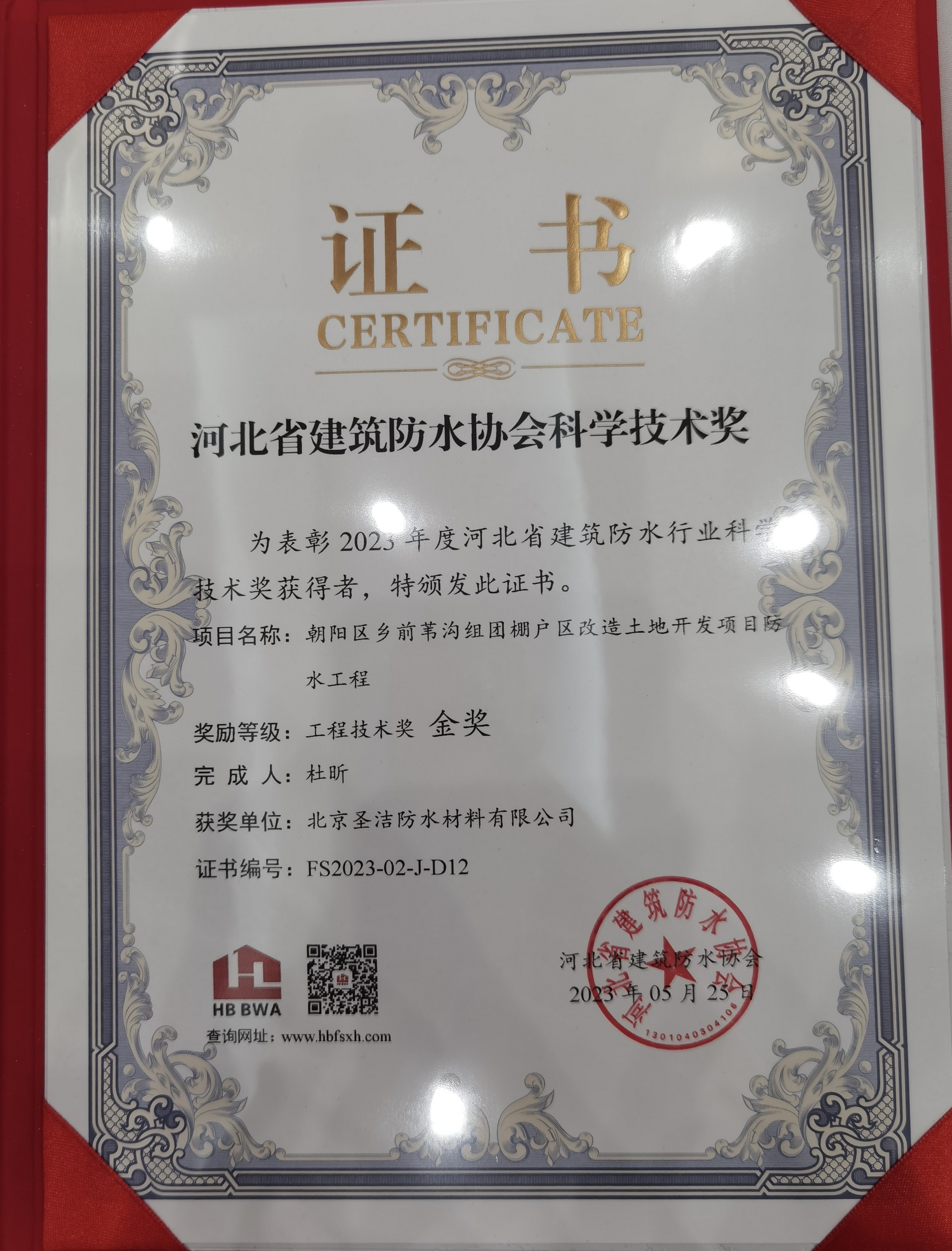 • 河北省建筑防水協會科學技術獎-工程技術獎