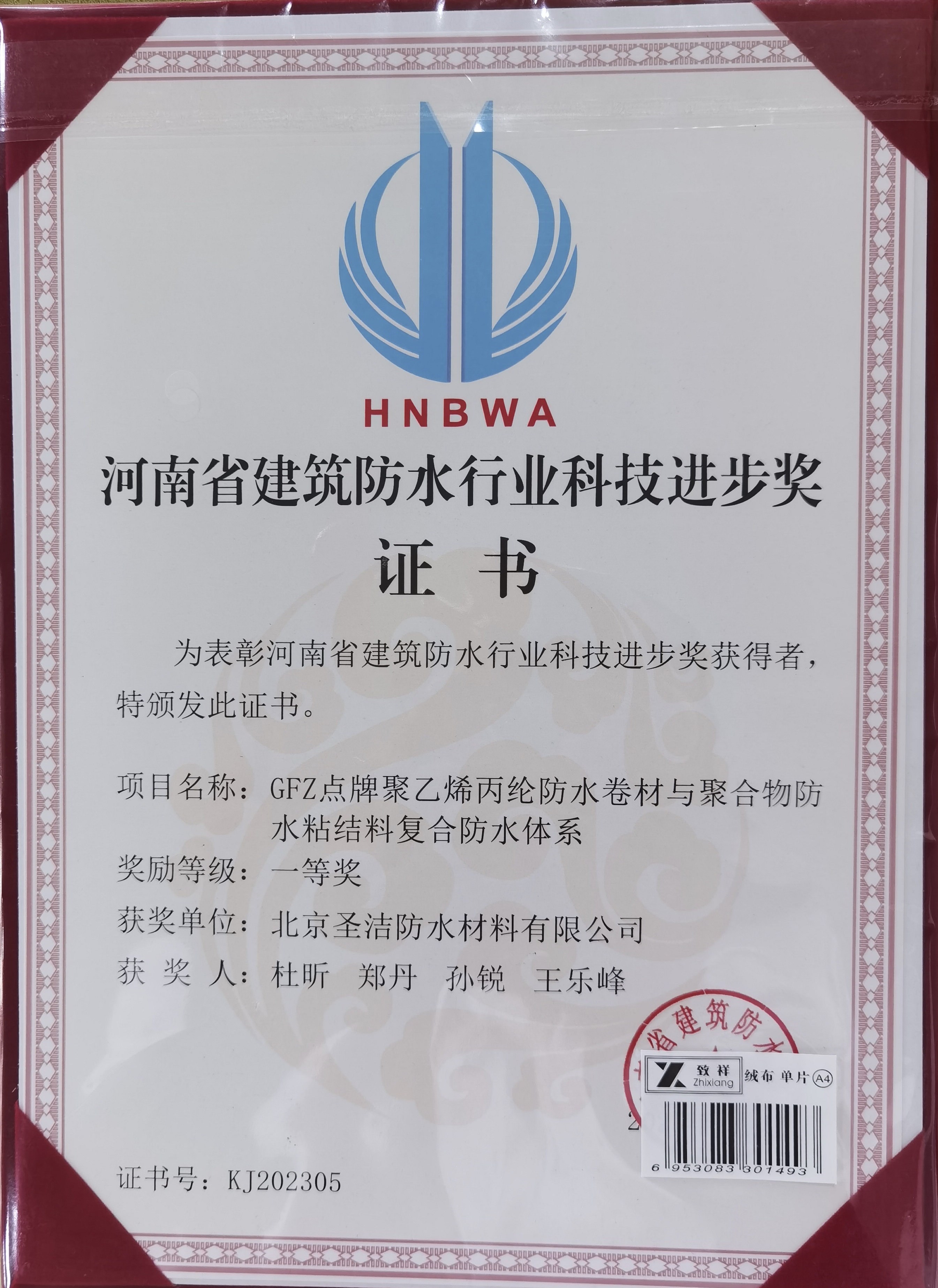 • 河北省建筑防水協會科學技術獎-科技進步獎