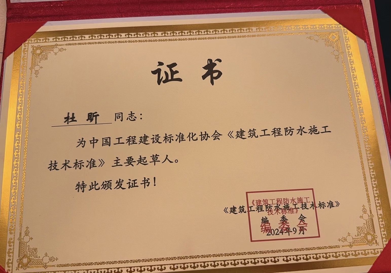 • 杜昕同志為《建筑工程防水施工技術標準》主