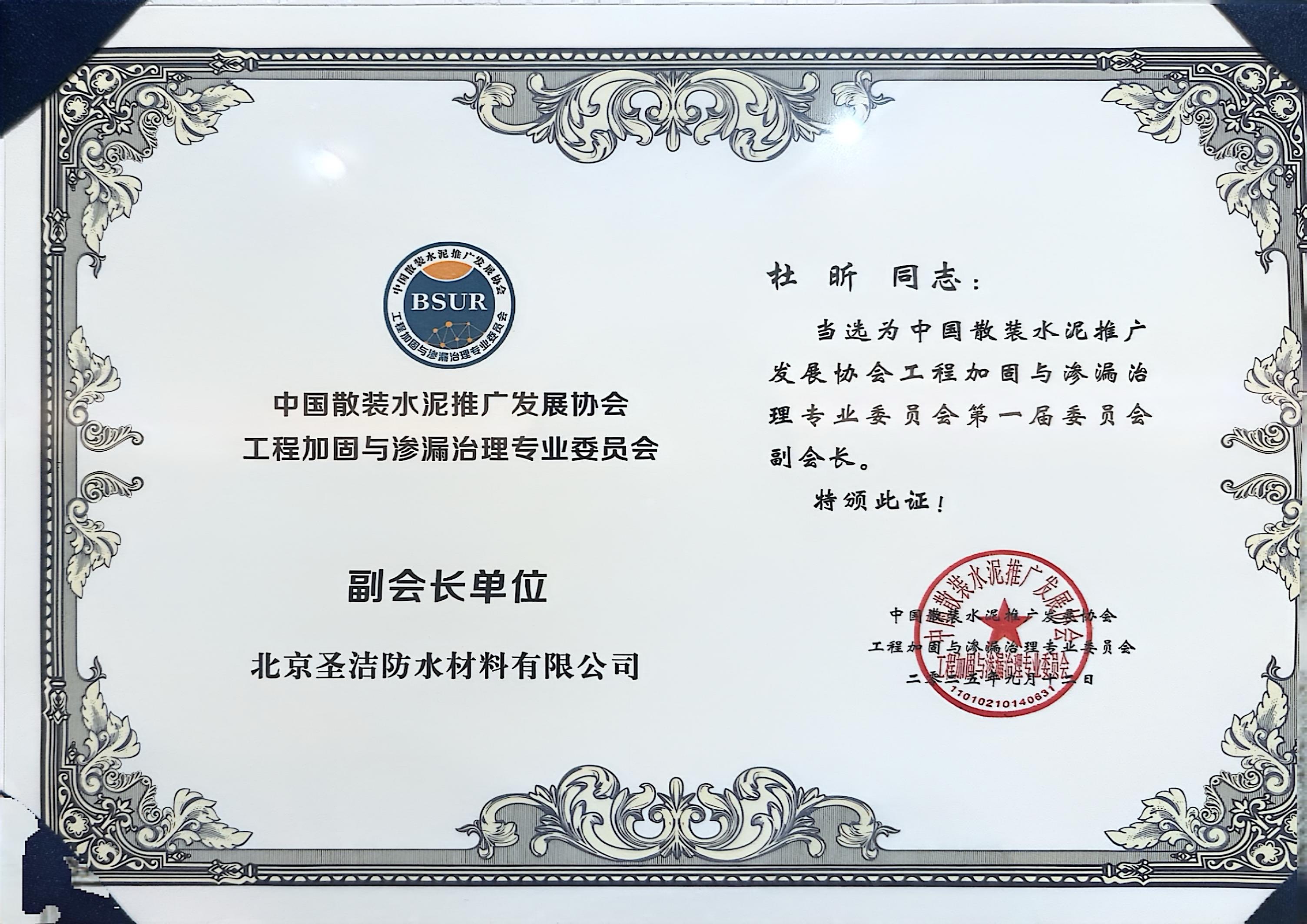 • 重慶市建筑灌漿防滲技術協會副會長單位